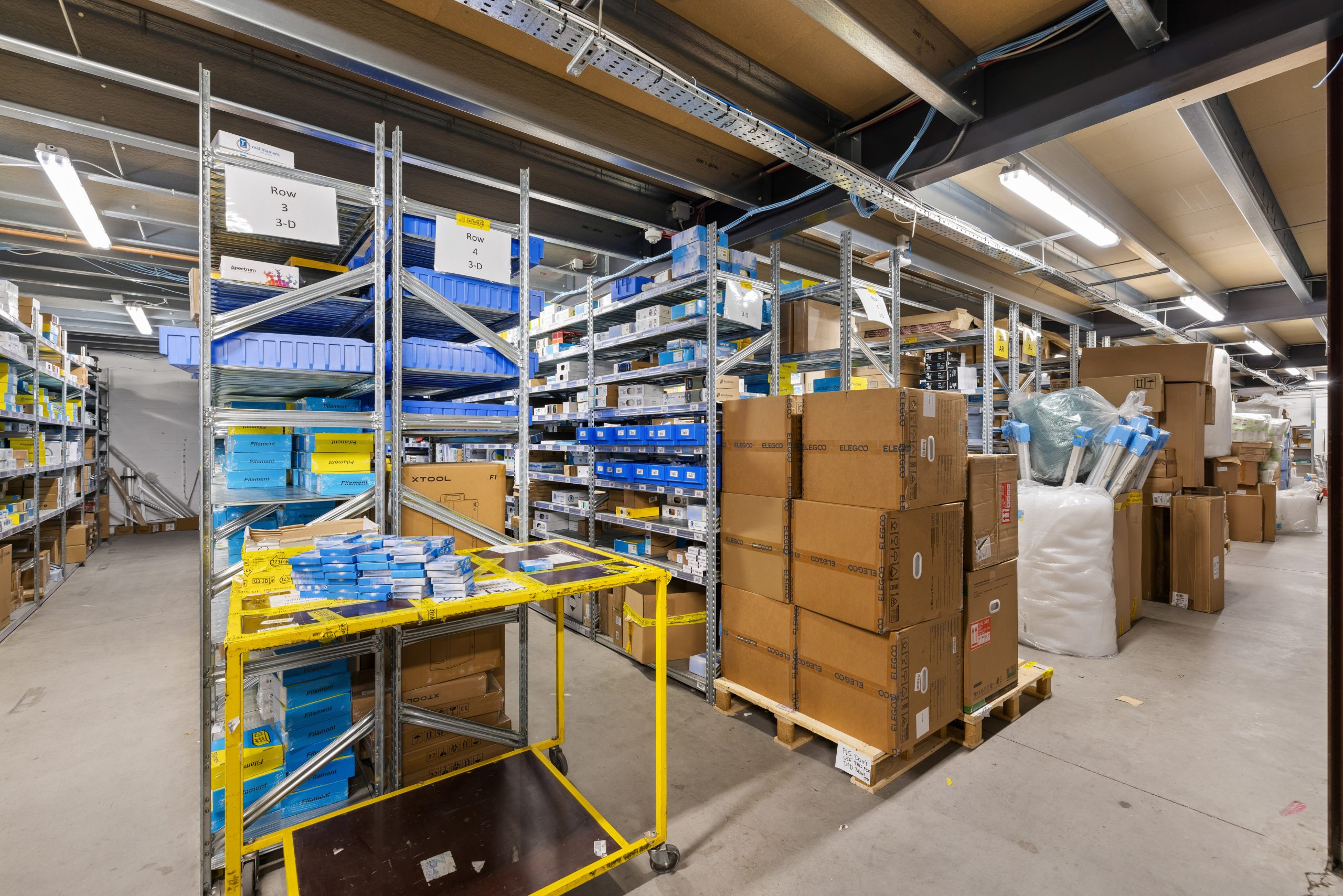 The building is of steel portal frame construction with an insulated metal deck incorporating translucent roof panels. The warehouse provides excellent internal clear heights of approximately 10 metres, with two large roller shutter doors, a goods lift, and strong loading and circulation space. The mezzanine is accessed via stairwell and lift from the loading bay, offering significant additional storage or operational space.